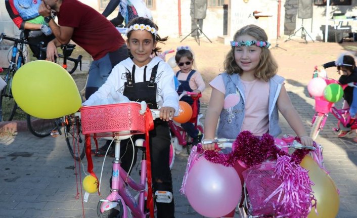 Ardından kadınlar, renkli kıyafetleri, balon, çiçek ve oyuncaklarla süsledikleri bisikletleriyle şehir turu attı.