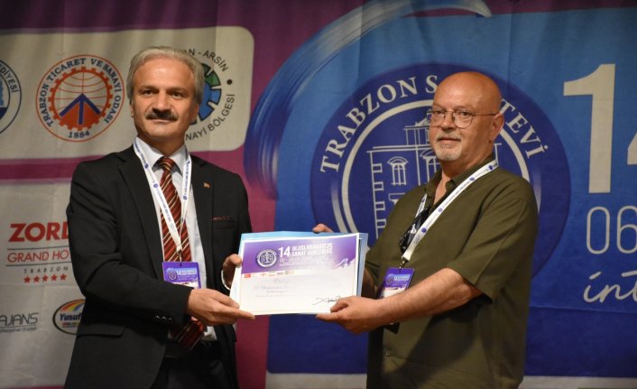 Trabzon Sanatevi Yönetim Kurulu Üyesi Kamuran Tuna, Erdoğan Öğretmen'e teşekkür belgesi takdim etti. TRABZON AA