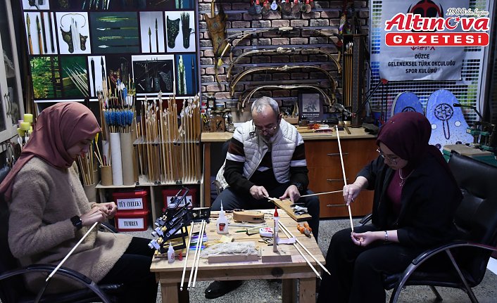 "Ecdadımızın kullandığı ölçülere sadık kalmaya çalışıyoruz. Okların yeleklerinde kullanılan tüylerin cinsi ve yapısı Türk oklarında biraz daha farklıdır diğerlerinden, daha özeldir. Onları da aynı usullere sadık kalarak çalışıyoruz. Atölye günlerimizde öğrencilerimiz okunun çubuğunu kendisi yuvarlar. Oku yapıştırırken kullanacağı yapışkanı da doğal yöntemle eritilerek elde eder. Ahşabın üstünde kullanılacak cilayı, bal mumundan kendileri yapıp cilalarlar. Tüylerini, şeklini, ecdadımızın kullandığı şekillere sadık kalarak kendileri kesip hazırlarlar. Bu tabii ki meşakkatli bir süreç fakat bu sanatı, unutulmaması için usta-çırak ilişkisinde öğrencilerimize aktarmamız lazım." DÜZCE (AA)