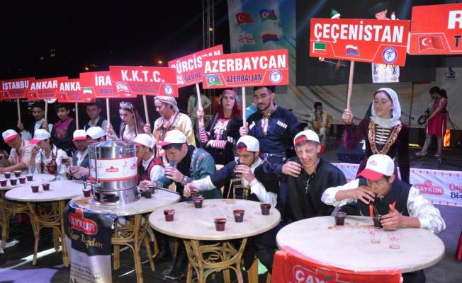 RİZE (AA) - Artvin ve Rize'nin ilçelerinde 8'incisi düzenlenen "Uluslararası Tulum ve Müzik Festivali" kapsamında en hızlı çay içme yarışması gerçekleştirildi.