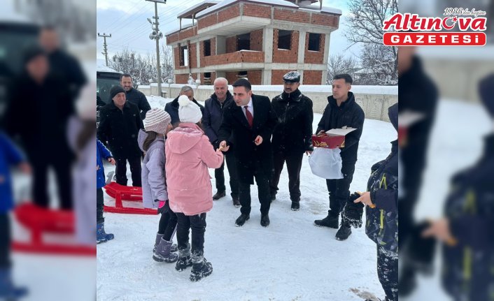 Ladik Kaymakamı Muhammet Özbalta, kızakla kayan çocukları ziyaret etti.