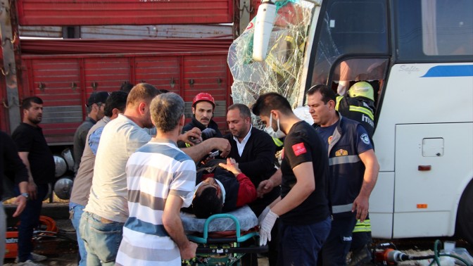 Öte yandan işçilerin bulunduğu otobüste sıkışanların kurtarılması için itfaiye ekiplerinin çalışması sürüyor.