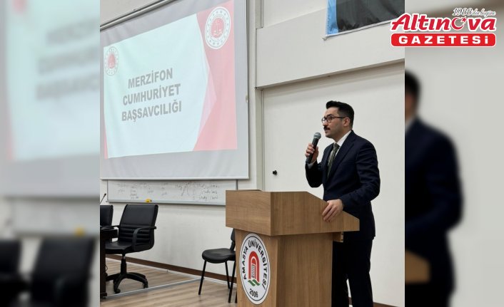 Merzifon Cumhuriyet Başsavcısı Mevlüt Furkan Akkaya, burada yaptığı konuşmada, IBAN kiralama konusunda son dönemde gençlerin ciddi yaptırımlarla karşı karşıya kaldığını, bu kapsamda toplumun bilgilendirilmesi gerektiğini söyledi.