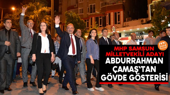 Milliyetçi Hareket Partisi Milletvekili Aday tanıtım toplantısından Bafra`ya dönen Samsun Milliyetçi Hareket Partisi Milletvekili Adayı Abdurrahman Çamaş, Bafra ilçesi Asri Mezarlık girişinde büyük bir kalabalık tarafından havai fişeklerle karşılandı. Burada uzun bir araç konvoyu oluşturan kalabalık ve seçim otobüsünde Bafralı vatandaşları selamlayan Çamaş, Alparslan Türkeş Parkı içerisinden Mehteran takımı ile MHP ilçe seçim merkezine yürüdü. Yürüyüş sırasında vatandaşların yoğun ilgisiyle karşılaşan Milletvekili Adayı Abdurrahman Çamaş, vatandaşlarla sohbet ederek yürüyüşünü tamamladı. İlçe seçim merkezinde MHP Bafra ilçe Başkanı Barbaros Turna`nın selamlama konuşmasının ardından konuşan Çamaş,