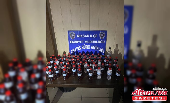 Tokat'ın Niksar ilçesinde 29,5 litre sahte içki ele geçirildi, 1 kişi yakalandı.