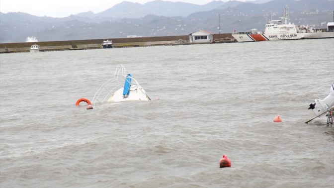 ORDU (AA) - Ordu'nun Fatsa ilçesinde balıkçı teknesi, fırtına sebebiyle alabora oldu.