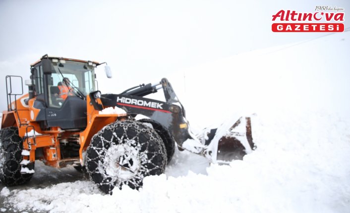 Kentin orta ve yüksek kesimlerinde etkili olan karın ardından ekiplerin iş makineleriyle yol açma ve kar küreme çalışmaları devam ediyor.