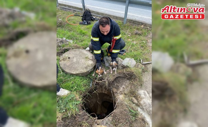 Ordu'da düştükleri menfezde mahsur kalan köpek yavruları itfaiye ekiplerince kurtarıldı.