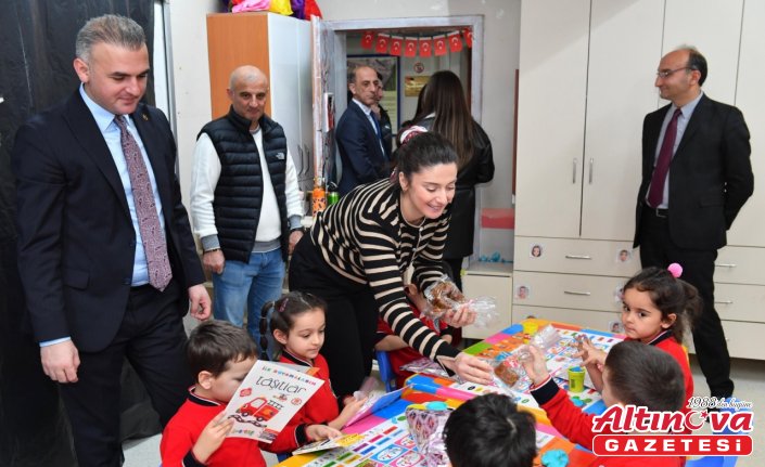 Belediyeden yapılan açıklamaya göre, Sosyal İşler Müdürü Toktamış Han Bahadır ile Gıda Mühendisi Dilara Ertürk ilkokulu ziyaret ederek öğrencilerle bir araya geldi.