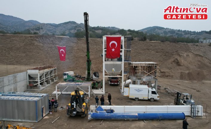 Eymir Mahallesi'ndeki Belediye Hizmet Kampüsünün yer aldığı bölgede 10 dekar alana kurulan tesisin ilk parçaları vinç yardımıyla yerleştirildi.