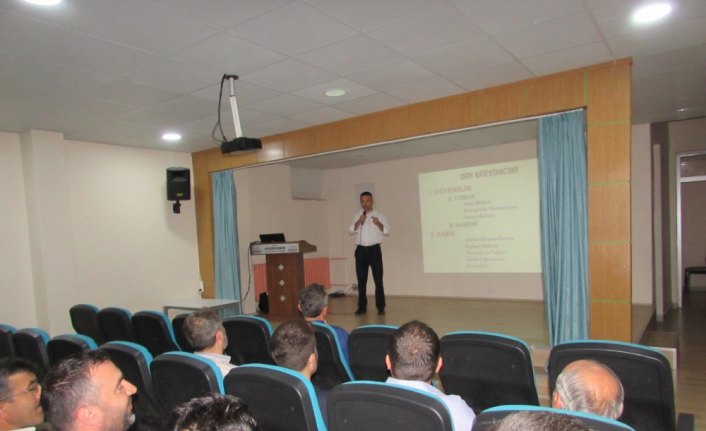 Kavak Akşemseddin Anadolu İmam Hatip Lisesi Konferans Salonu'nda müftülük şefi Eyüp Uyar başkanlığında gerçekleştirilen toplantıya cami ve mescitlerdeki din görevlileri ile müftülük personeli katıldı.