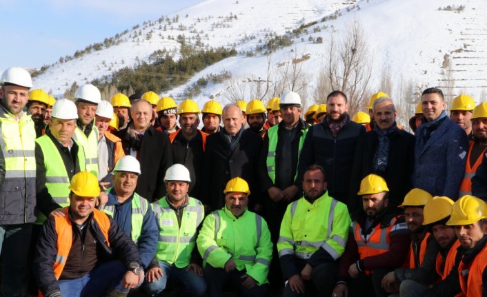 Vauk Dağı Tüneli şantiyesinin bulunduğu bölgede işçilerle bir süre sohbet eden Turhan, hatıra fotoğrafı çektirdi.