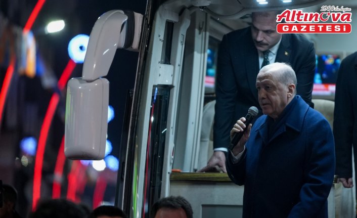 Merkez Camisi önünde kendisini bekleyen hemşehrilerini eşi Emine Erdoğan ile selamlayan Cumhurbaşkanı Erdoğan, makam aracından inerek, otobüse geçti.