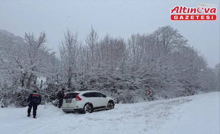 İlçenin yüksek kesimlerinde kar yağışının etkisini artırması sonucu bazı sürücüler kara saplanarak yolda kaldı.