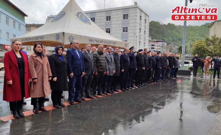 Salıpazarı ilçesi Cumhuriyet Meydanı'nda gerçekleştirilen tören, Atatürk Anıtı'na çelenk sunulmasıyla başladı. Saygı duruşu ve İstiklal Marşı'nın okunmasının ardından tören İlçe Emniyet Amirliği binasında devam etti.