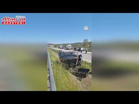 Samsun'da devrilen otomobilde emniyet kemeri takılı olan çift yara almadan kurtuldu