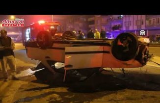 Karabük'te duvara çarparak alev alan otomobil...