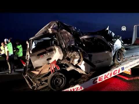 Samsun'da hafif ticari araç, tır ve kamyonun arasında kaldı, 2 kişi yaralandı
