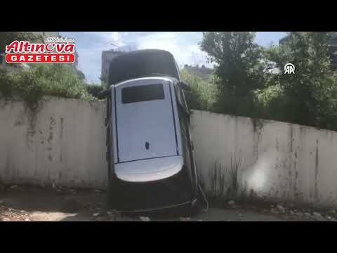 Samsun'da istinat duvarından düşen cipteki 2 kişi yaralandı