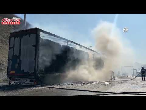 Samsun'da seyir halindeyken alev alan karton yüklü tır yandı