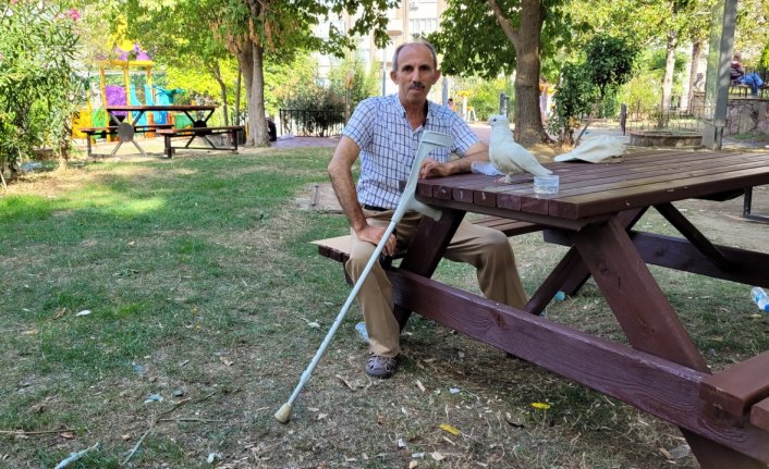 Samsun'un İlkadım ilçesinde yaşayan bedensel engelli 65 yaşındaki Ahmet Güney, oğlunun yavruyken kedi saldırısından kurtardığı ayağı sakat güvercin "Paşa"yı yanından ayırmıyor.