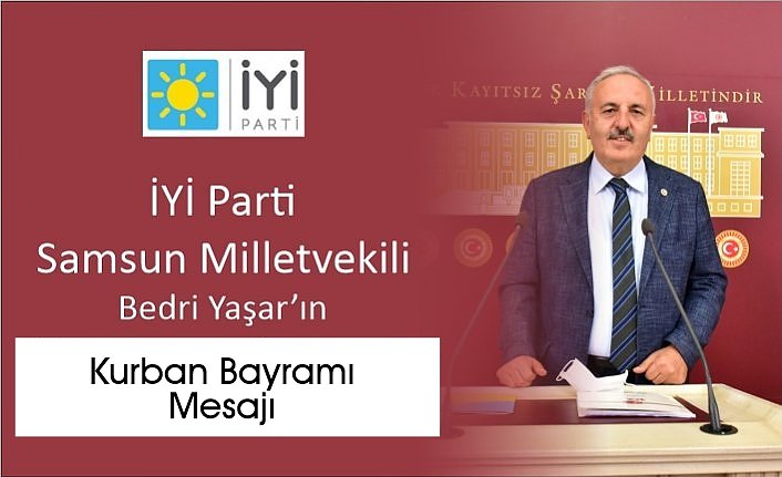 İyi Parti Samsun Milletvekili Bedri Yaşar; Kurban Bayramı’nın milletimizin,Türk ve İslam âleminin birlik ve beraberliğine vesile olmasını temenni ediyor, Hayırlı bayramlar diliyorum dedi.