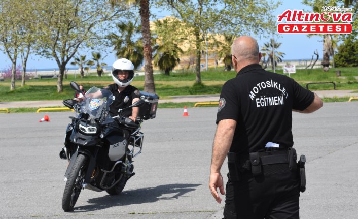 Batıpark'ta oluşturulan alanda İl Emniyet Müdürlüğü Trafik Denetleme Şubesi'nde görevli "şahinlere" eğitim veren Korkmaz, birer aylık süreyle temel trafik, ileri ve güvenli sürüş konularında bilgiler veriyor.