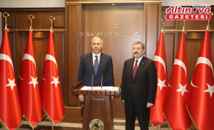 Ardından Samsun Büyükşehir Belediyesine geçen Yerlikaya, Şeref Defteri'ni imzalamasının ardından Büyükşehir Belediye Başkanı Halit Doğan ile görüştü. SAMSUN (AA)