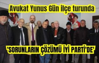 Ziyarette bulunduğu ilçelerde partililerden büyük ilgi gören ve destek sözü alan İYİ Parti Samsun Milletvekili Aday Adayı Yunus Gün, "Yoğun çalışma temposu içerisine girdik. Çalışmalarımızı hız kesmeden sürdüreceğiz" dedi.