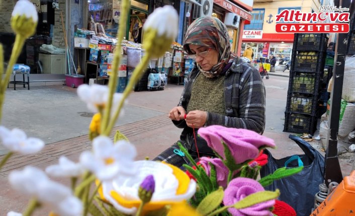 Samsun'da yaşayan 65 yaşındaki Asiye Kiraz, rengarenk iplerle ördüğü çiçekleri satarak aile bütçesine katkı sağlıyor.