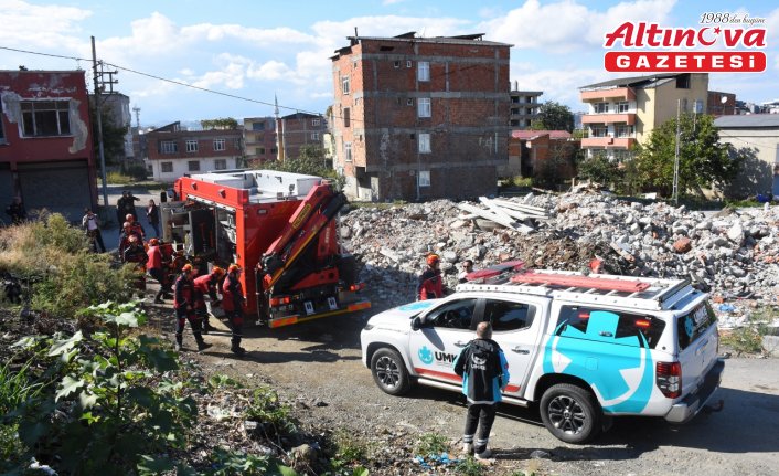 Canik ilçesi Soğuksu Mahallesi'ndeki kentsel dönüşüm alanında gerçekleştirilen tatbikatta, senaryo gereği 6,4 büyüklüğündeki depremin ardından enkazda kalanların olduğu ve depremden kaynaklı bir binada yangın çıktığı ihbarı yapıldı.