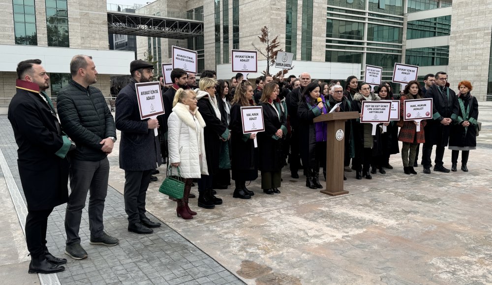 Avukatlar adına basın açıklamasını okuyan CMK Komisyon Başkanı Tuğçe Karadeniz, avukatlara yapılan haksızlık sebebiyle toplandıklarını söyledi.