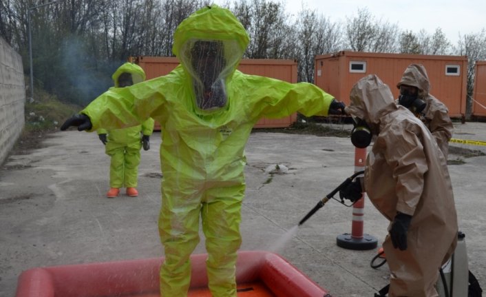 Başka bir senaryo gereği Kimyasal Biyolojik Radyolojik Nükleer Tehditler (KBRN) timleri, Çorum'da depremde zarar gören ve bir fabrikadan sızan kimyasala müdahale etti. Bölgede özel kıyafetli uzmanlar tarafından ölçümler yapıldı.