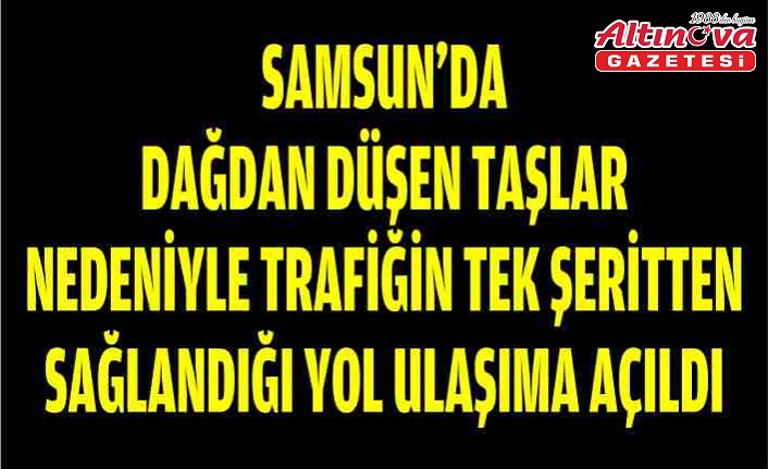 Samsun'da dağdan düşen taşlar nedeniyle trafiğin tek şeritten sağlandığı yol ulaşıma açıldı