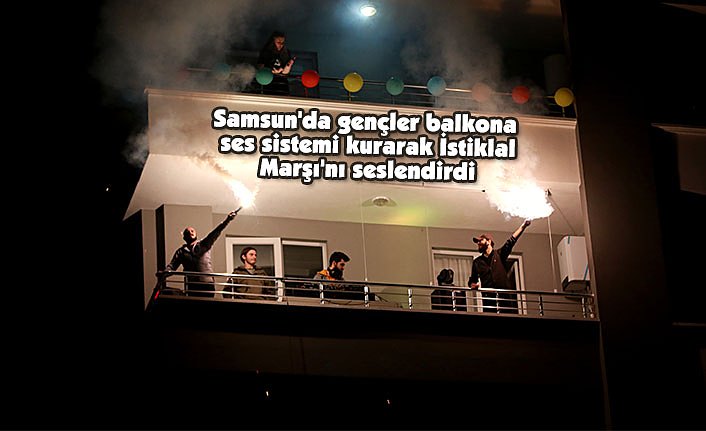 Atakum ilçesi Yenimahalle'de oturan ve müzik işiyle ilgilenen Enes Gevrekçi, Çağrı Dede ve Arda Cermen isimli arkadaşlar, yeni tip koronavirüse (Kovid-19) karşı alınan tedbirler kapsamında, 23 Nisan ve Türkiye Büyük Millet Meclisi'nin (TBMM) açılışının 100. yılı için balkonlarında kutlama yaptı.