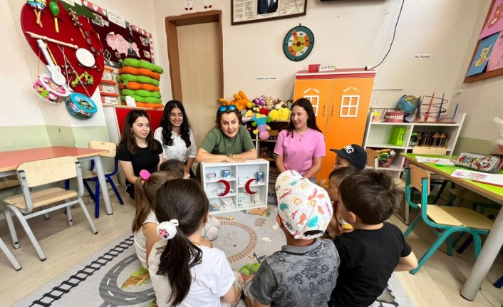Biyoloji öğretmeni Leman Yüce Sezek, ilkokul öğrencilerine ilk yardım konusunda eğitim verdi.