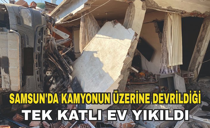 Samsun'da kamyonun üzerine devrildiği tek katlı ev yıkıldı