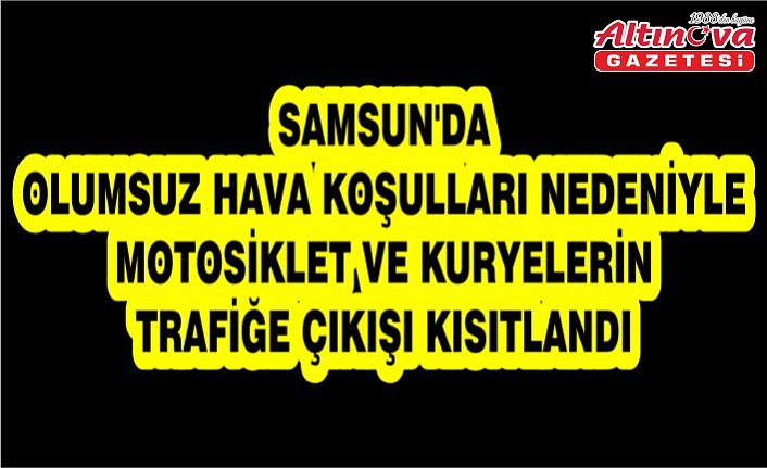 Samsun Valiliğinden yapılan açıklamada, saat 21.00 itibarıyla her türlü motosiklet ve kuryelerin trafiğe çıkışının tedbir amaçlı ikinci bir duyuruya kadar kısıtlandığı belirtildi.