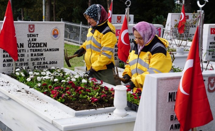 Samsun Büyükşehir Belediyesi, Çanakkale Zaferi'ne atıfta bulunarak kentteki şehitliklere "1915" adet karanfil dikti.