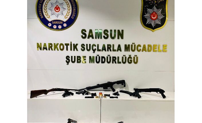 Samsun'da kaçak silah ticareti yapan kişinin ev ve iş yerindeki aramada çok sayıda silah ile uyuşturucu madde ele geçirildi.