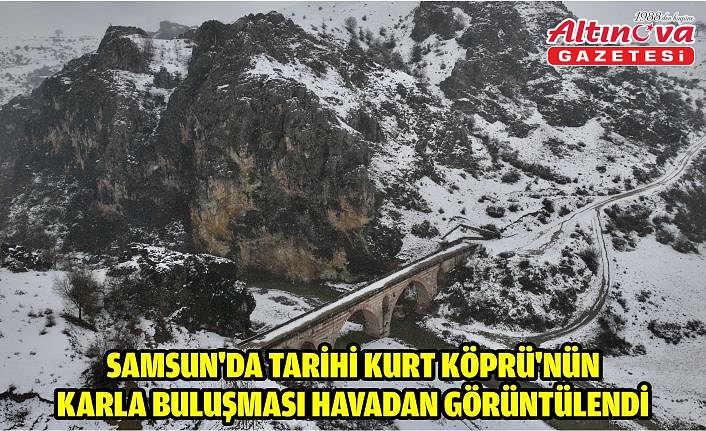 Samsun'un Havza ve Vezirköprü ilçelerini birbirine bağlayan tarihi Kurt Köprü'nün karla buluşması dronla kaydedildi.