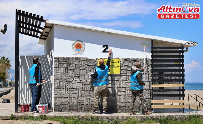 Samsun'da yükümlüler, Atakum sahilinde bulunan mavi bayraklı plajlardaki lavabo ve duş alanlarını boyayıp çevreyi temizleyerek yaza hazırlık yaptı.