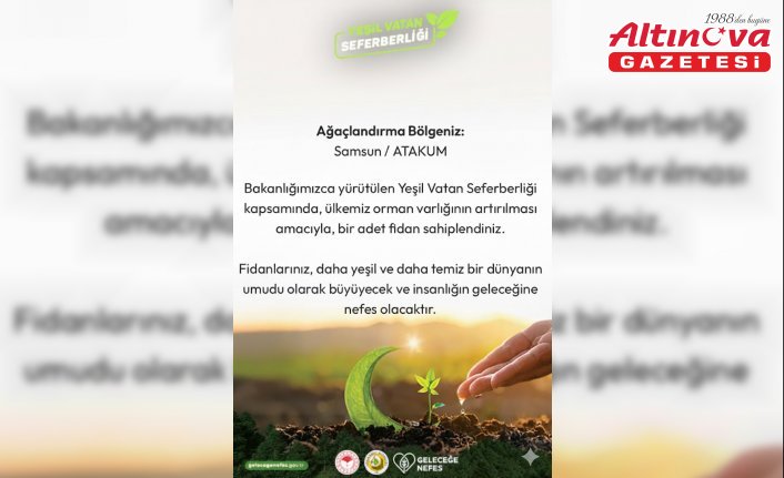 Tebrik kartında, Tarım ve Orman Bakanlığınca yürütülen "Yeşil Vatan Seferberliği"ne katkı sunmak ve 10 Ocak Çalışan Gazeteciler Günü dolayısıyla kentte görev gazeteciler adına Samsun'un Atakum ilçesinde fidan bağışlandığı belirtildi.