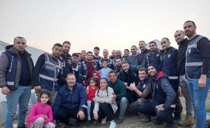 Gaziantep'in Nurdağı ilçesinde görev yapan Samsun Emniyet Müdürlüğü ekipleri, 11 yaşına giren depremzede Berat Babacan'a doğum günü sürprizi yapıldı.