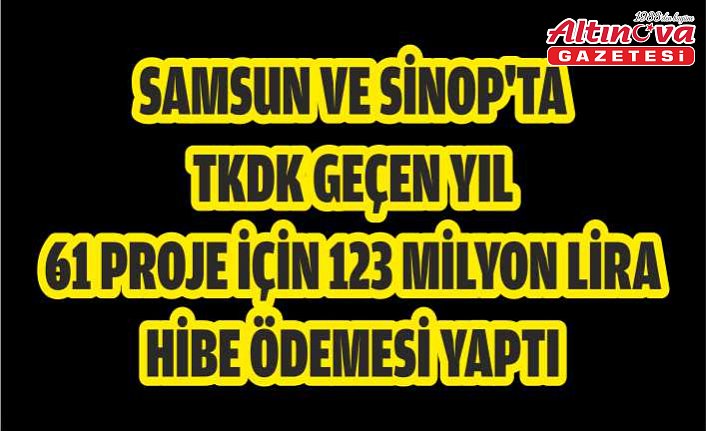 Tarım ve Kırsal Kalkınmayı Destekleme Kurumunun (TKDK) Samsun ve Sinop'ta geçen yıl 61 proje için 123 milyon lira hibe ödemesi gerçekleştirdiği bildirildi.