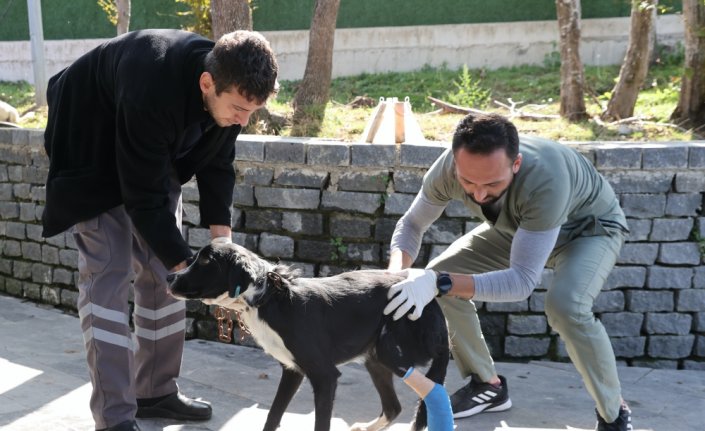 Merkezde görevli veteriner hekim Emre Pınar, AA muhabirine, sol arka ayağı büyük oranda ezilmiş köpeğin tedaviye alındığını söyledi.