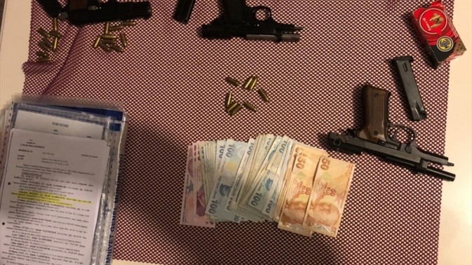 Adreslerde arama yapan ekipler 4 tabanca, 25 fişek, 17 bin lira para, çok sayıda senet ve banka kartlarıyla dijital materyal ele geçirdi.