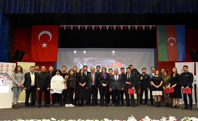 OMÜ Atatürk Kongre ve Kültür Merkezi (AKKM) Mavi Salon’da gerçekleşen programa OMÜ Rektör Yardımcıları Prof. Dr. Mehmet Ali Cengiz ve Prof. Dr. Mehmet Kuran, Azerbaycan Ankara Büyükelçiliği Eğitim Müşaviri Doç. Dr. Necibe Nesibova, Uzaktan Eğitim Merkezi (UZEM) Müdürü Prof. Dr. İzzet Akça, Mühendislik Fakültesi Öğr. Üyesi Prof. Dr. Azer Kasımzade, fakülte dekanları, çok sayıda akademisyen ve öğrenci katıldı.
