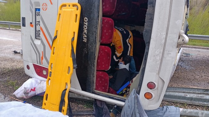 SİVAS - Midibüsün devrilmesi sonucu 10 kişi yaralandı