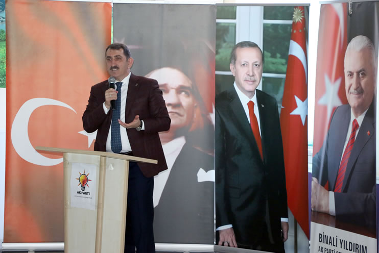 Şehirlerimizi daha da güzel, insanlarımızı daha mutlu ve refah kılmak için, ekmeğimizi, aşımızı, işimizi daha da büyütmek için, Türkiye’yi dize getirmek isteyen alçaklara ders vermek için 16 Nisan Pazar günü Cumhurbaşkanlığı Halk Oylaması için sandık başına gideceğiz. Daha güzel bir gelecek, daha güçlü bir Türkiye, daha kalkınmış şehirler için inşallah yine milletimiz ile birlikte güçlü bir şekilde evet diyeceğiz. Burada siz değerli teşkilat üyesi kardeşlerimize de önemli görevler düşüyor.